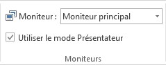 Pour activer le mode Présentateur, basculez sur l’onglet Diaporama du ruban et cochez la case Utiliser le mode Présentateur dans le groupe Moniteurs. Utilisez la liste déroulante Moniteur pour choisir le moniteur sur lequel doit s’afficher la présentation.