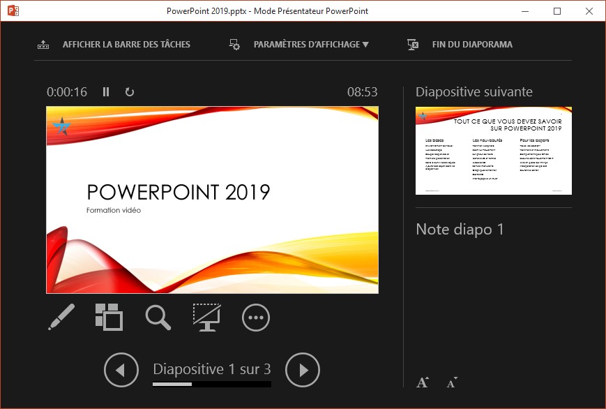 - Vos notes sont accessibles pendant la présentation, mais elles ne sont pas affichées sur le vidéoprojecteur.
