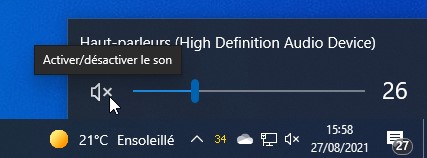 Une croix s’affiche à droite de cette icône pour signaler que le volume est à 0. Cliquez à nouveau pour réactiver le son :