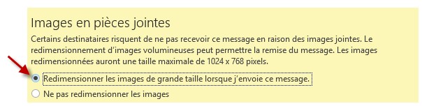 Lorsque vous insérez des images jointes dans un e-mail, il se peut que certains de ses destinataires ne le reçoivent pas en raison de sa taille. Rassurez-vous : Outlook 2016 vous permet de redimensionner automatiquement les images incluses dans le message en limitant leur taille à 1024×768 pixels. Dans la fenêtre de composition de massage, basculez sur l’onglet Fichier du ruban et sélectionnez l’option Redimensionner les images de grande taille lorsque j’envoie ce message.