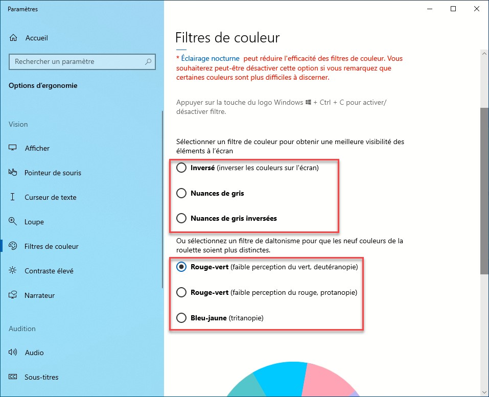 Déplacez-vous vers la partie inférieure de la fenêtre et choisissez un filtre de couleur ou un filtre de daltonisme :