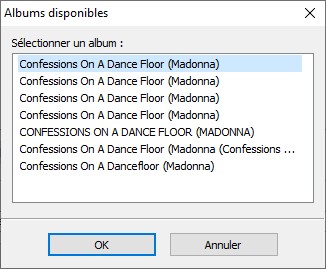 Faites votre choix et cliquez sur OK. Le morceaux du CD sont identifiés et automatiquement sélectionnés :
