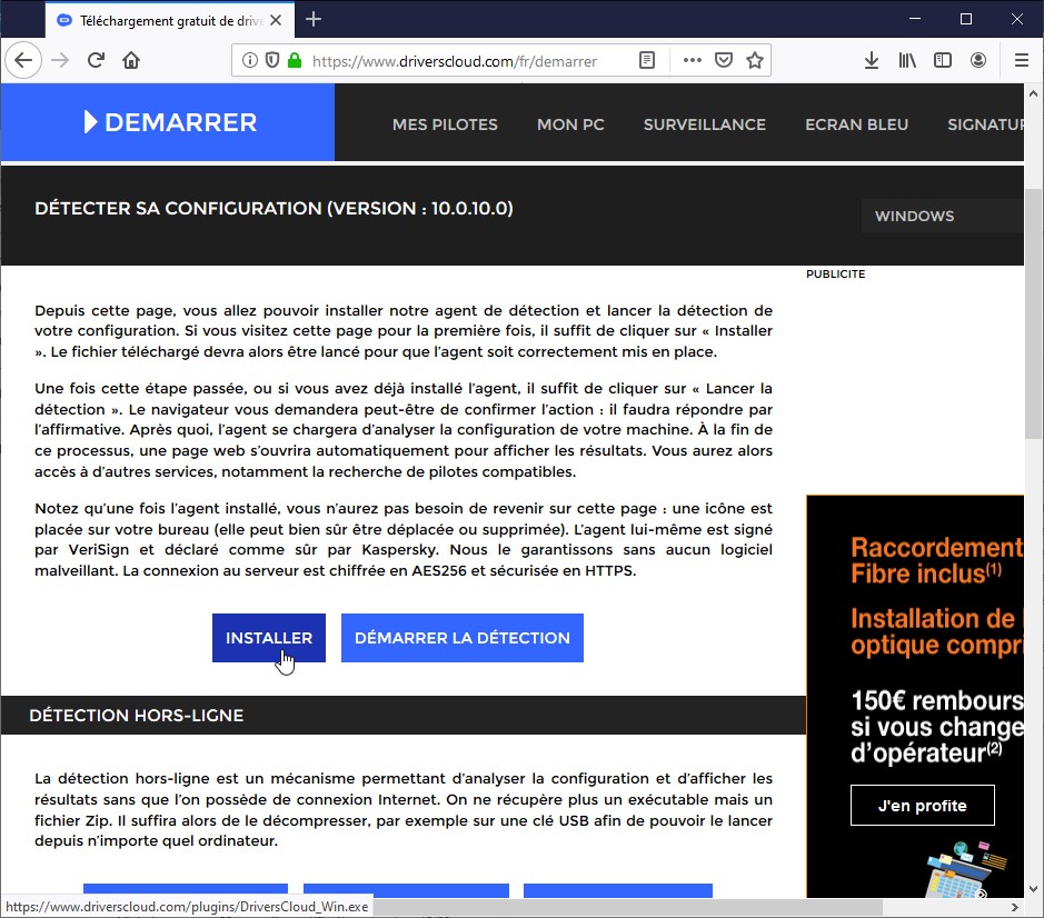 Quelques secondes plus tard, une boîte de dialogue vous propose de détecter les composantes de votre ordinateur. Cliquez sur Détecter :