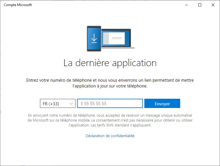 Une boîte de dialogue vous demande d’entrer le numéro de téléphone de votre smartphone :