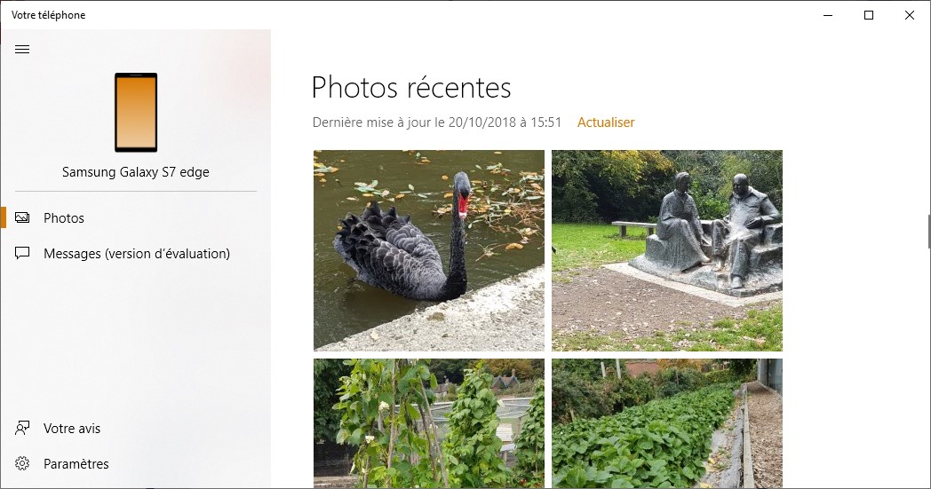 Après quelques instants, vos photos sont directement accessibles dans l’application Votre téléphone :