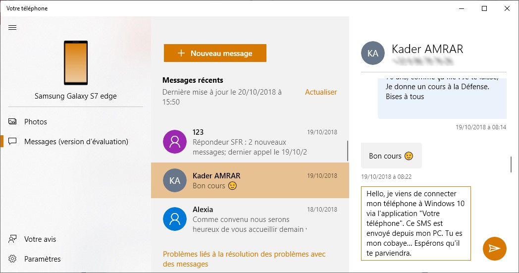Vous avez un smartphone Android 7.0 ou supérieur ? En utilisant l’application Votre téléphone, vous allez pouvoir envoyer des SMS depuis votre ordinateur et afficher les photos prises avec votre smartphone sur votre ordinateur.