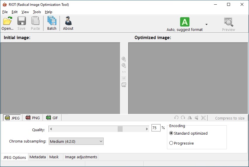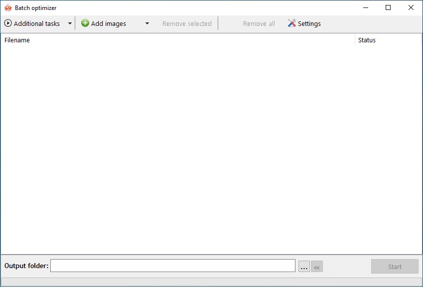 - Vous pouvez cliquer sur Batch pour lancer la compression de plusieurs images. La fenêtre de l’application est remplacée par une autre fenêtre :