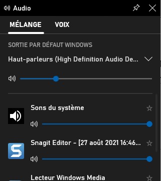Dans la barre jeu, on peut choisir les modules que l’on souhaite afficher. Le mélangeur audio permet en quelques clics de régler le volume des applications, de changer de périphérique audio ou de micro :