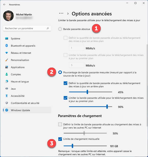 Windows 11 fait de fréquentes mises à jour. Tant mieux ! Cela signifie que votre système est mieux protégé et qu’il fonctionne mieux d’une manière générale. Si votre connexion à Internet n’est pas très rapide, vous constatez-peut-être que ces mises à jour ralentissent sensiblement vos accès au Web lorsqu’elles sont en cours de téléchargement. Cette section va vous montrer comment définir la limite de bande passante allouée au téléchargement des mises à jour lorsqu’elles s’effectuent en arrière-plan.
