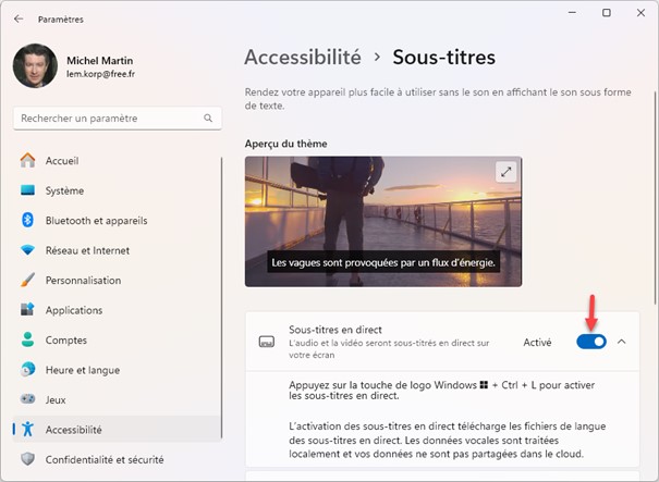 Si vous appréciez les raccourcis clavier, vous pouvez également appuyer sur Windows + Contrôle + L pour activer les sous-titres en direct, et ainsi, éviter d’avoir à ouvrir la fenêtre des paramètres de Windows.