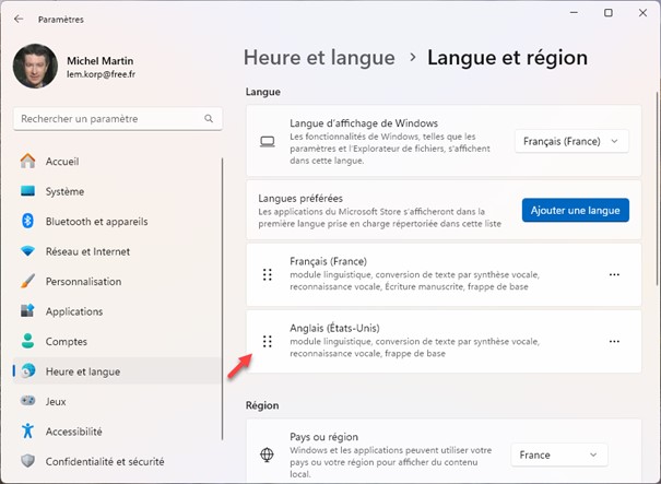 Quelques minutes plus tard, la nouvelle langue est installée :