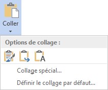 Si vous cliquez sur la flèche située sous l’icône Coller, vous pouvez accéder à des fonctionnalités de mise en forme évoluées. Cliquez sur :