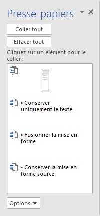 A partir de maintenant, lorsque vous utilisez la commande Couper ou Copier (groupe Presse-papiers, onglet Accueil du ruban), la sélection sera empilée dans le presse-papiers multiple. Pour coller l’un des éléments empilés, il vous suffira alors de positionner le point d’insertion dans le document et de cliquer sur l’entrée correspondante dans le volet Presse-papiers.
