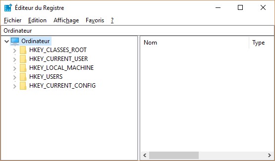 Cliquez sur Démarrer, tapez regedit et cliquez sur regedit dans la partie supérieure du menu Démarrer. Le contrôle du compte d’utilisateur se manifeste. Cliquez sur Oui pour lancer l’éditeur du Registre :