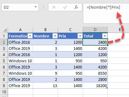 ["=[Nombre]*[Prix]"]