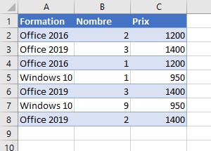 Pour illustrer le filtrage des données, nous allons travailler sur le tableau ventes :