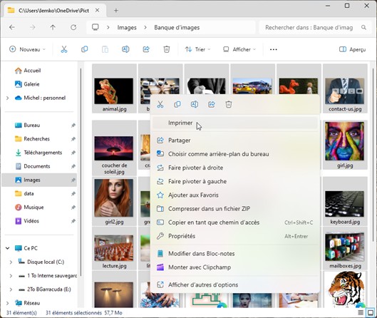 Ouvrez l’explorateur de fichiers et déplacez-vous dans le dossier qui contient les images que vous voulez regrouper dans un document PDF. Sélectionnez ces images. Pour cela, vous pouvez cliquer sur la première, maintenir la touche Majuscule du clavier enfoncée, puis cliquer sur la dernière.