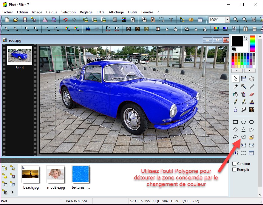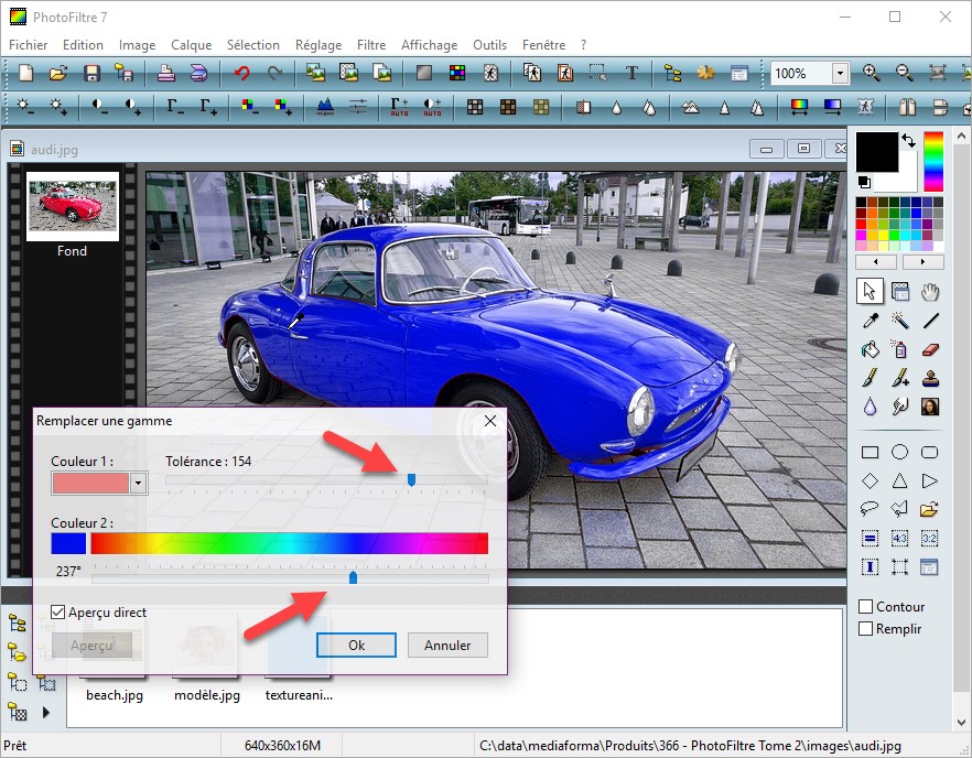 Cette section va vous montrer comment remplacer une gamme de couleurs dans une photo en utilisant PhotoFiltre.