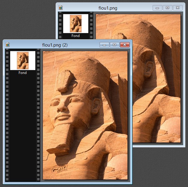 Ouvrez l’image originale avec la commande Ouvrir dans le menu Fichier, puis lancez la commande Dupliquer dans le menu Image ou utilisez le raccourci-clavier Ctrl + U. L’image originale est dupliquée à l’identique. Elle apparaît en avant-plan de l’image originale.