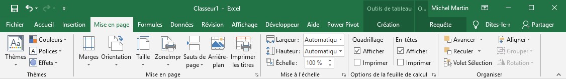 Avant d’imprimer une feuille de calcul, il est souvent utile de la mettre en page. Sélectionnez l’onglet Mise en page dans le ruban et utilisez les commandes du groupe Mise en page.