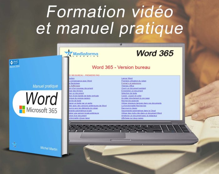 Cette formation vidéo très complète couvre tout ce que vous devez savoir pour tirer le maximum de Word 365, aussi bien en version bureau que Web. Les vidéos ont été tournées de façon à ce que tout le monde puisse appliquer ce qui est présenté. Le manuel illustré qui accompagne la formation est une aide supplémentaire pour vous seconder dans la mise en œuvre des très nombreuses techniques abordées dans la formation vidéo. Des fichiers de ressources sont fournis avec la formation pour vous aider à appliquer pas à pas ce que vous apprenez.