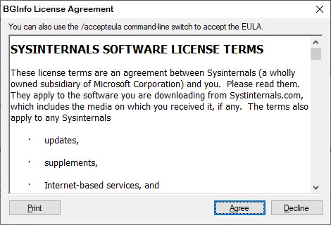 La fenêtre de BgInfo s’affiche. Cliquez sur Agree :