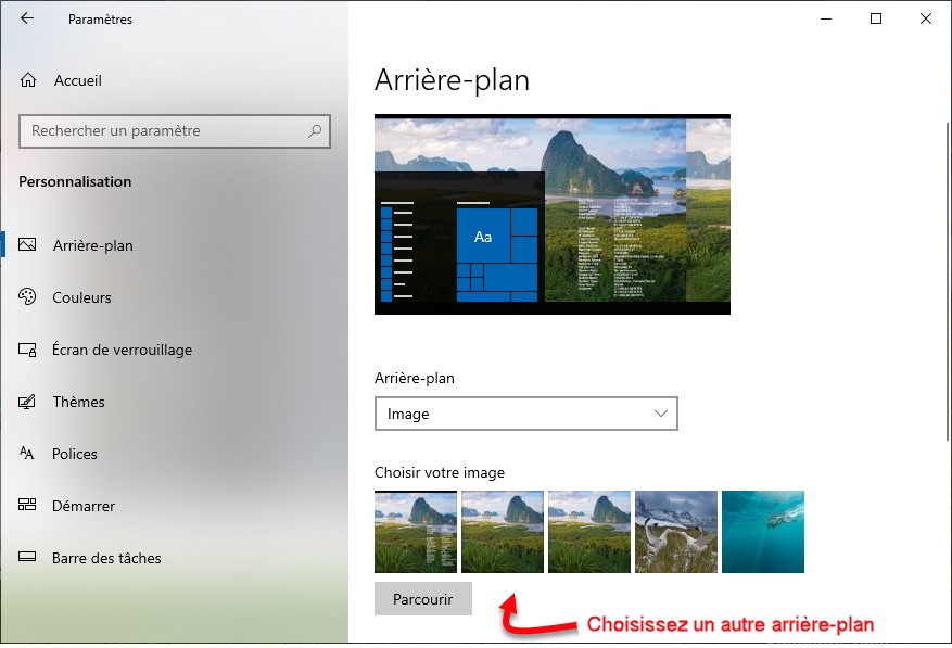Cliquez sur Arrière-plan et choisissez un autre arrière-plan :