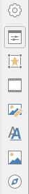 Le volet latéral est affiché dans la partie droite de la fenêtre. Il contient par défaut sept icônes : Propriétés, Transition, Animation, Pages maîtresses, Styles et formatage, Galerie et Navigateur :