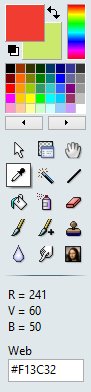 Dans la partie supérieure de la palette d’outils, les deux carrés représentent la couleur d’avant plan et la couleur d’arrière-plan. Ces deux couleurs sont associées aux boutons gauche et droit de la souris. Plusieurs outils de dessin les utilisent. Par exemple, les outils Pinceau, Remplissage, Aérographe et Ligne.