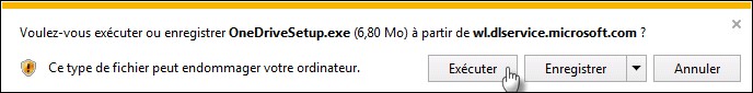 Si vous utilisez Internet Explorer, une boîte de message s’affiche. Cliquez sur Exécuter (si vous utilisez un autre navigateur, le comportement peut être légèrement différent. Quelle que soit votre configuration, exécutez le programme d’installation de OneDrive) :