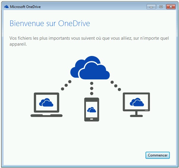 Quelques instants plus tard, une boîte de dialogue vous souhaite la bienvenue dans OneDrive :