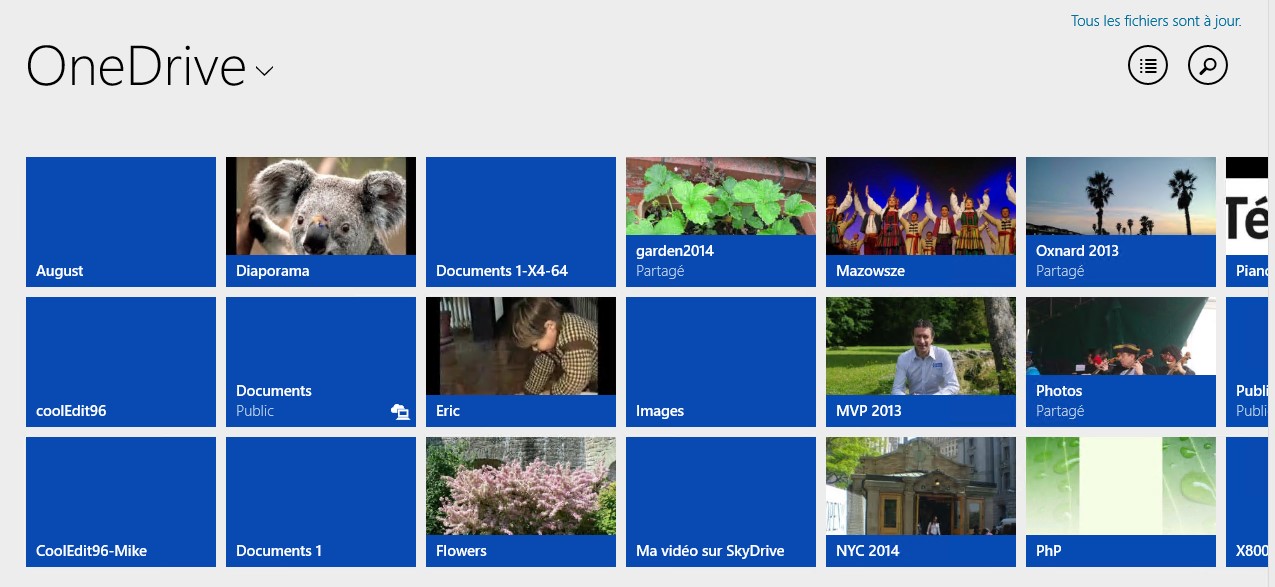 Quelques instants plus tard, votre espace OneDrive est accessible, comme si vous vous trouviez dans l’application Modern UI OneDrive :