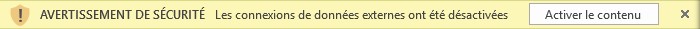 Un avertissement de sécurité vous informe que les connexions de données externes ont été désactivées. Le fichier provenant de votre SkyDrive, vous pouvez indiquer à Excel qu’il s’agit d’une source de données fiable en cliquant sur Activer le contenu.