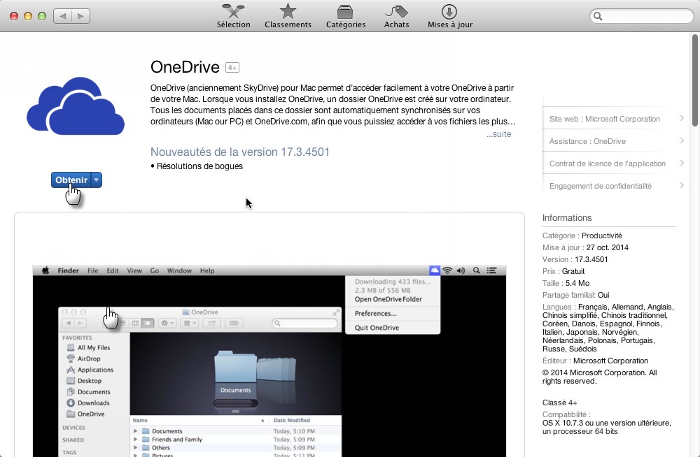 OneDrive sur Mac OSX 10.7.3 ou ultérieur