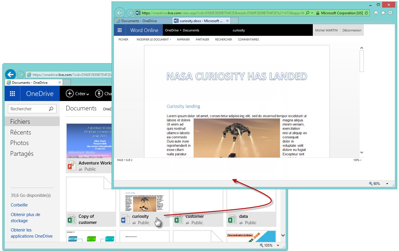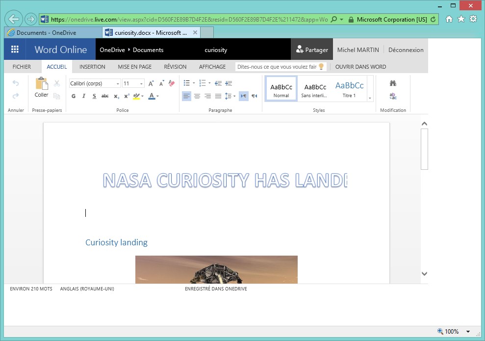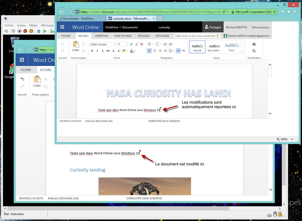 Une particularité très intéressante d’Office Online : si un même document est ouvert par plusieurs personnes, chacune peut le modifier. Les modifications sont immédiatement reportées dans les autres occurrences du document :