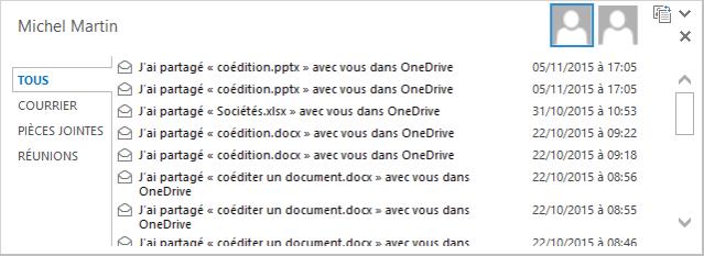 Lorsque vous cliquez sur l’en-tête d’un message dans le volet des en-têtes, vous pouvez afficher des informations sur l’expéditeur du message dans le volet Contacts. Par défaut, ce volet est désactivé. Pour l’activer, basculez sur l’onglet Affichage dans le ruban, cliquez sur l’icône Volet Contacts dans le groupe de même nom et sélectionnez Normal dans le menu. Vous pouvez désormais accéder à de nombreuses informations relatives à l’expéditeur : e-mails, pièces jointes, réunions, etc. Désormais, les courriers, pièces jointes et réunions avec vos contacts seront directement accessibles dans le volet Contacts.