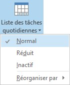Le calendrier s’ouvre automatiquement sur la date du jour. Vous pouvez entrer des informations textuelles dans les différentes plages horaires, afficher le jour précédent ou le jour suivant, ainsi que la liste des tâches à effectuer. Si le volet des tâches n’est pas visible, basculez sur l’onglet Affichage dans le ruban, cliquez sur l’icône Liste des tâches quotidiennes dans le groupe Disposition et choisissez Normal dans le menu.