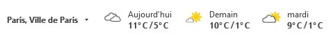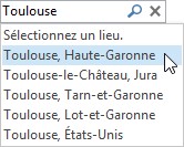 Si vous ne travaillez pas dans la ville sélectionnée par défaut, il est très facile d’en changer. Cliquez sur la flèche qui suit le nom de la ville et choisissez Ajouter un emplacement dans le menu. Tapez un nom de ville, puis appuyez sur la touche Entrée. Si plusieurs villes portent le même nom, précisez celle qui vous correspond.