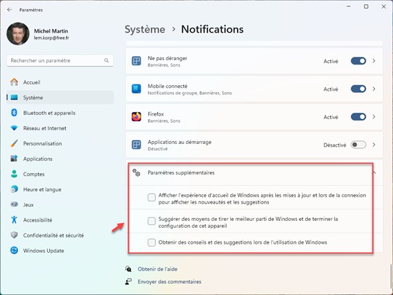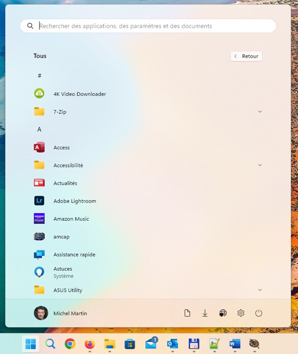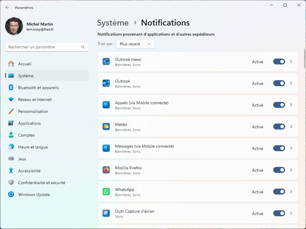 Pour localiser rapidement un réglage, entrez son nom dans la zone de texte Rechercher dans les paramètres :
