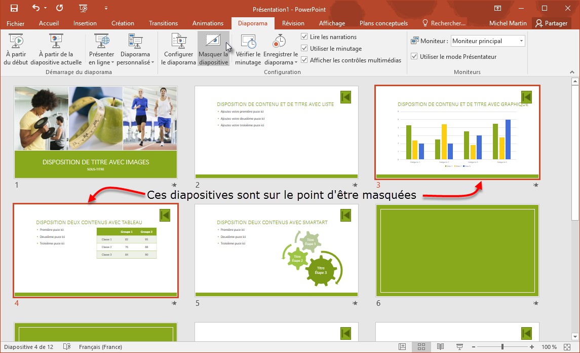 - Cliquez tour à tour sur les diapositives que vous voulez dissimuler en maintenant la touche Ctrl du clavier enfoncée.