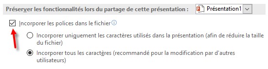 Pour incorporer toutes les polices utilisées dans une présentation :