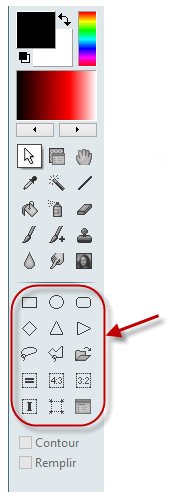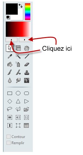 La partie centrale de la palette d’outils donne accès aux outils de travail. Nous y reviendrons en détail dans les autres rubriques de cette formation.