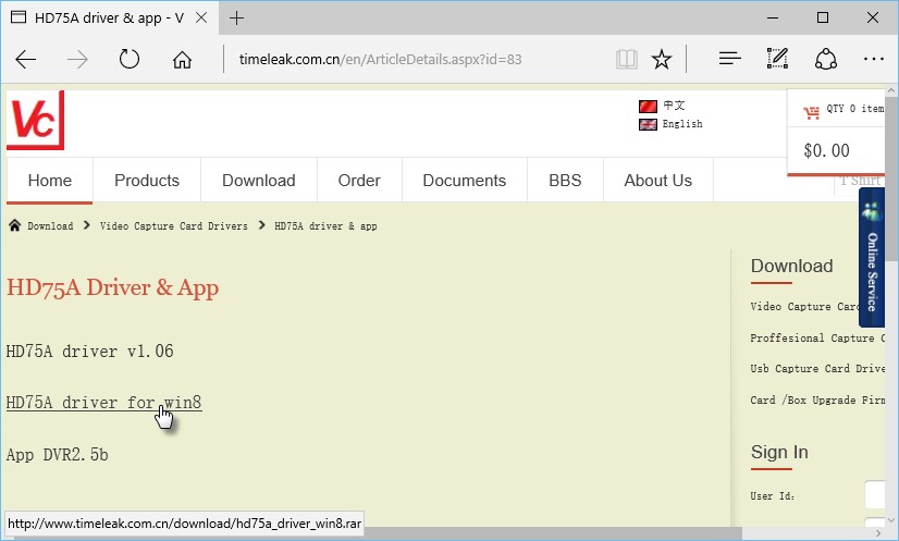 Le pilote qui a fait fonctionner cette carte a pour nom HD75A. J’ai utilisé la version 32 bits pour Windows 8. Elle a très bien fonctionné sur Windows 10 Entreprise 32 bits. Vous pouvez la télécharger ici : http://www.timeleak.com.cn/en/ArticleDetails.aspx?id=83