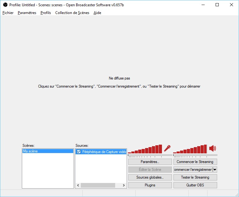 Lancez Open Broadcaster. Voici ce que vous devriez obtenir :