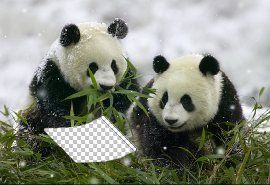 SI vous utilisez une image qui contient un ou plusieurs calques, la gomme fait apparaître l’image de fond lorsqu’elle est passée sur un calque :