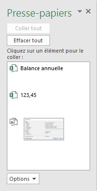 Les applications de la suite Office 2016 ont accès à un presse-papiers multiple contenant 24 entrées. Il est donc possible de couper ou de copier jusqu’à 24 éléments différents et de les coller comme bon vous semble dans vos classeurs. Pour accéder à cette fonctionnalité, vous devez afficher le volet Presse-papiers en cliquant sur son lanceur de boîte de dialogue.