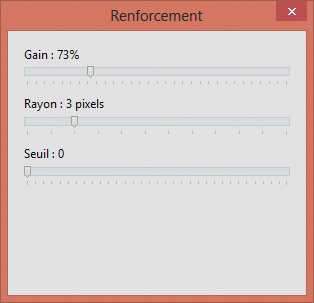 Pour illustrer un autre filtre, nous annulons le filtre Renforcement avec la commande Défaire Renforcement dans le menu Edition.