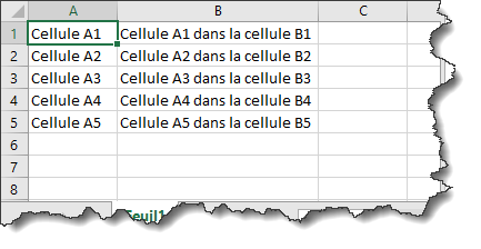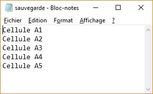 es cinq lignes du fichier sauvegarde.txt seront copiées dans les cellules B1 à B5 pour obtenir ce résultat :