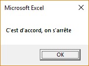 Vous pouvez également utiliser les constantes vbCritical, vbQuestion, vbExclamation et vbInformation pour ajouter une icône dans la boîte de dialogue.