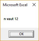 Dim n as Integer n = 12 MsgBox "n vaut " & n